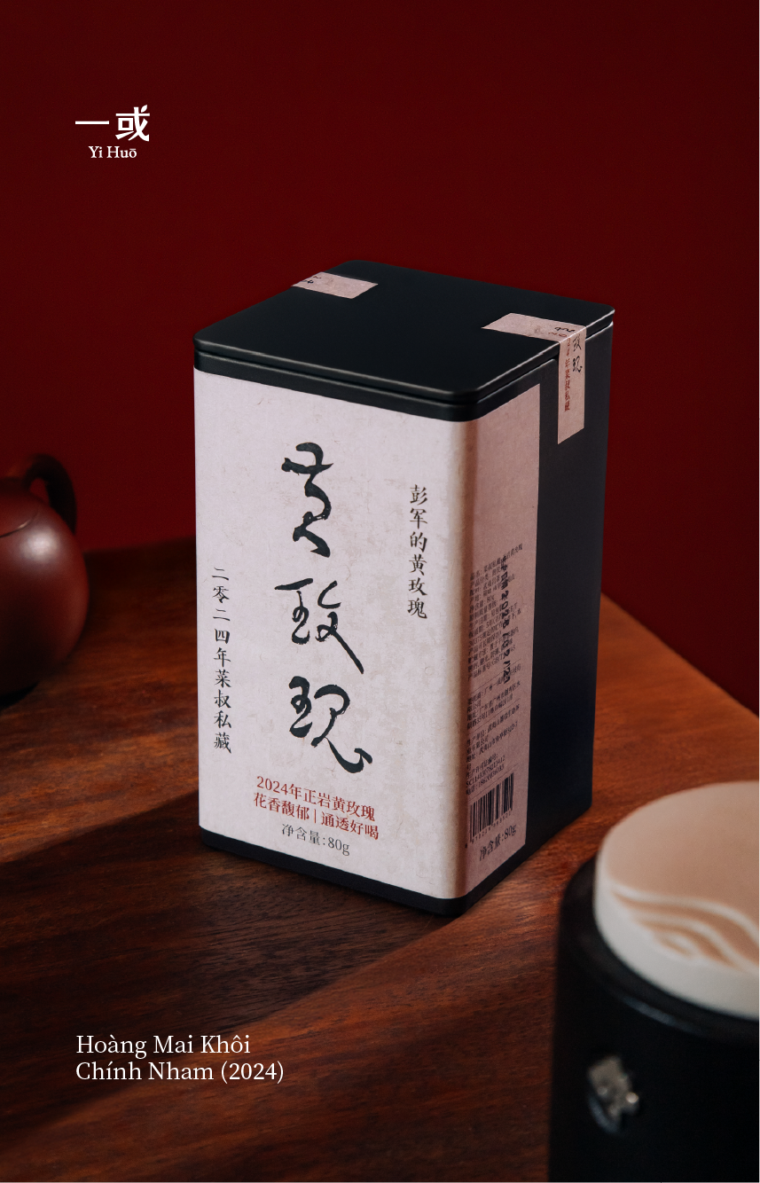 Loại trà: Trà Ô long (Vũ Di Nham Trà) Danh mục: Hoàng Mai Khôi Cấp độ chất lượng: Loại nhất Quy cách đóng gói: 80g/hộp Người làm trà: Sư phụ Bành Quân, nghệ nhân đời thứ ba trong gia đình làm trà tại Trà Thiên Tâm Nham, Vũ Di Sơn.